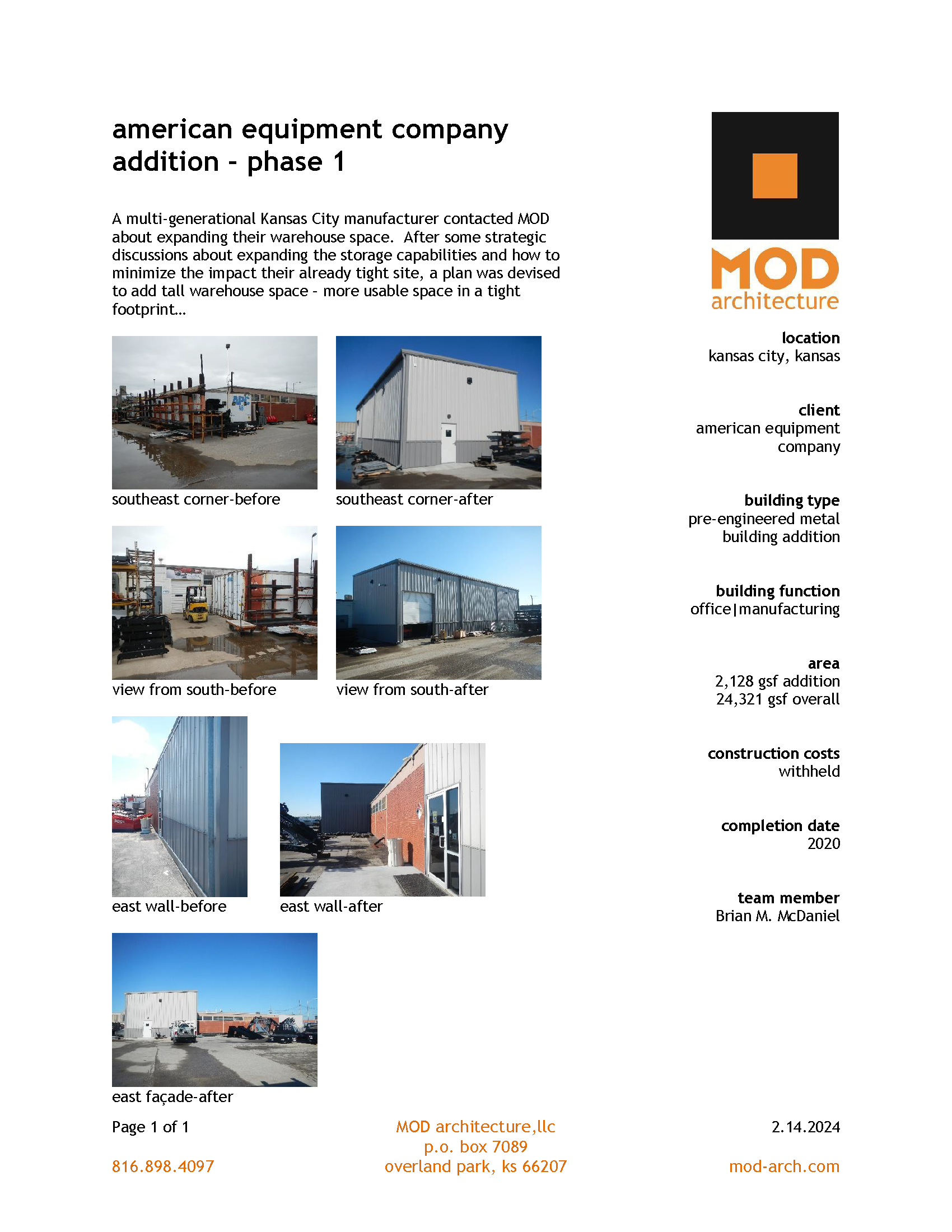 American Equipment Expansion - Phase I